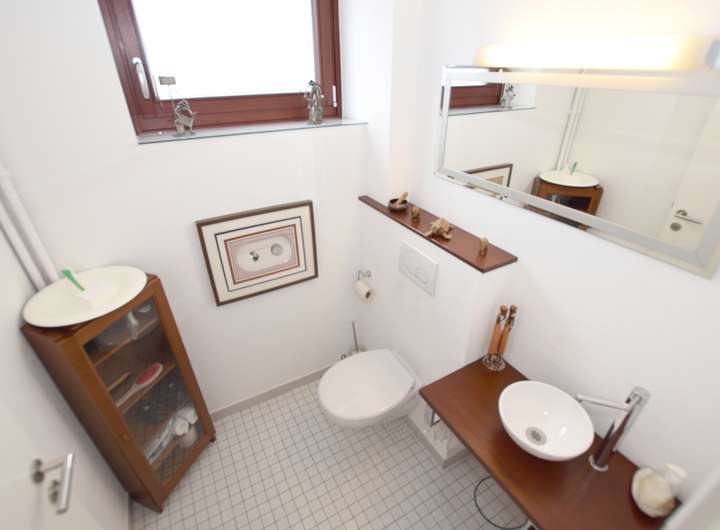 Das Haus präsentiert sich in sehr gepflegtem Zustand. Man kann einziehen, ohne vorher viele Handwerker reich machen zu müssen. Die Holzfenster mit Wärmeschutzglas verfügen überwiegend über Außenrollläden.