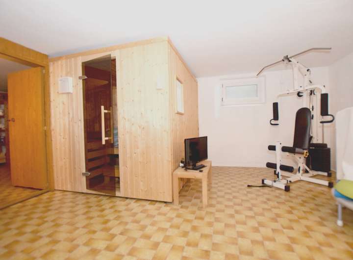 Keller: prima Nutzflächen, zum Beispiel Fitnessraum mit Sauna, Vorratsräume, Waschkeller, Heizungskeller. Hier finden Sie auch die Brennwert-Ölzentralheizung.
