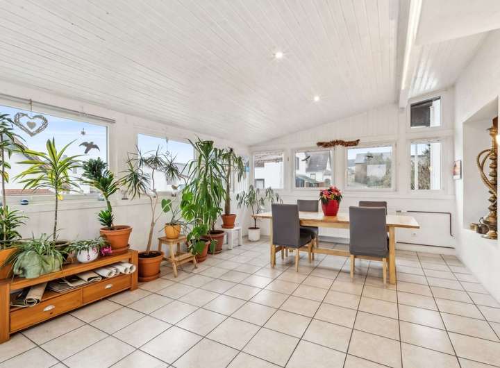 Im Erdgeschoss befinden sich: Der großzügige Dielen-/Eingangs-/Treppenhausbereich mit Garderobe, ein Gäste-WC, ein separates Zimmer (hier wurde eine zusätzliche Dusche eingebaut), eine Küche mit EBK und ein großer und heller Wohn-/Essbereich mit Zugang zum Wintergarten.