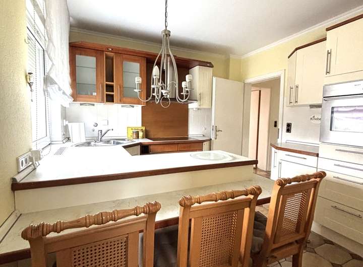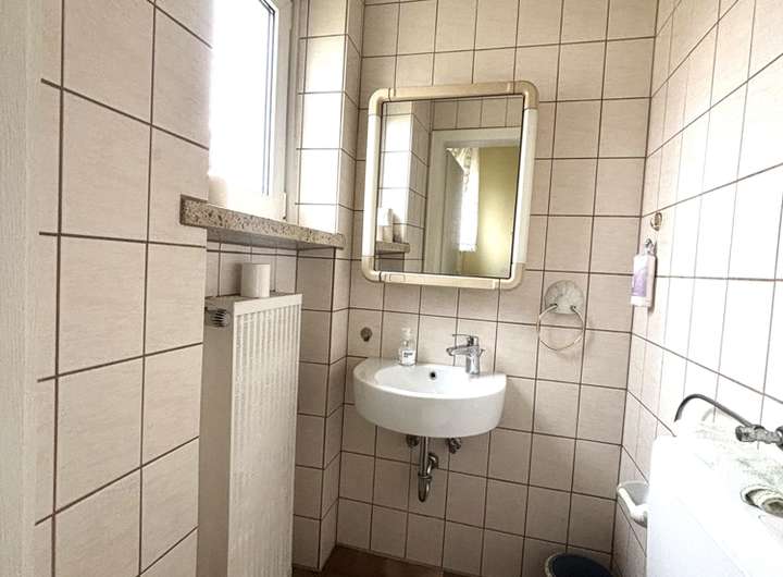 Das Wohnhaus erstreckt sich über zwei Ebenen zuzüglich eines nutzbaren Kellers. Die Wohnfläche beträgt ca. 135m² ,verteilt auf zwei Etagen. Im Erdgeschoss finden Sie eine funktionale Raumaufteilung mit gewohnter Bauweise der 60er Jahre, die sich mit etwas Aufwand modernisieren lässt. Das Highlight ist der große Wohnbereich mit Zugang zum Garten. Eine Einbauchküche steht Ihnen ebenfalls zur Verfügung.