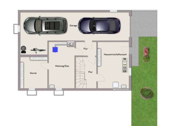 Das Untergeschoss bietet vielseitig nutzbare Nebenflächen. Neben einer geräumigen Garage sind hier Abstell- und Wirtschaftsräume, die Haustechnik sowie zusätzliche Bereiche untergebracht, die sich beispielsweise als Arbeitszimmer, Hobbyraum oder Lagerfläche eignen.