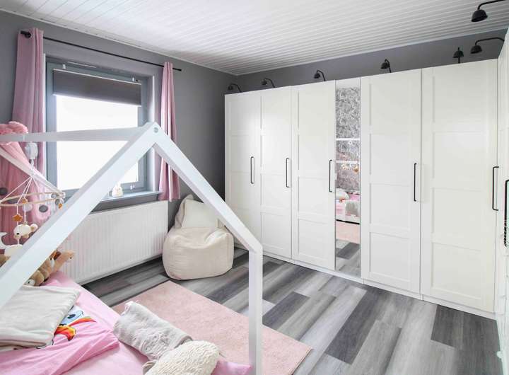 Die Wohnfläche von ca. 132 m² verteilt sich auf insgesamt 6 Zimmer, darunter 4 Schlafzimmer. Das Dachgeschoss ist bereits ausgebaut und vollständig in die Wohnfläche integriert. Ergänzt wird der Grundriss durch ein Hauptbadezimmer mit Dusche und Badewanne (Badewanne erneuert 2013) sowie ein Gäste-WC mit Fußbodenheizung aus dem Jahr 2012.