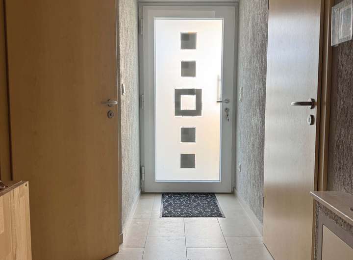 2023 wurde eine neue Haustürüberdachung ergänzt und im Wohnzimmer eine große dreifach verglaste Schiebeelementtür eingebaut