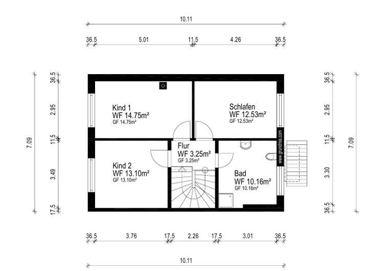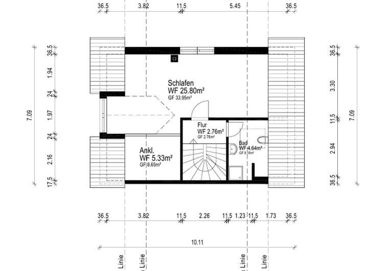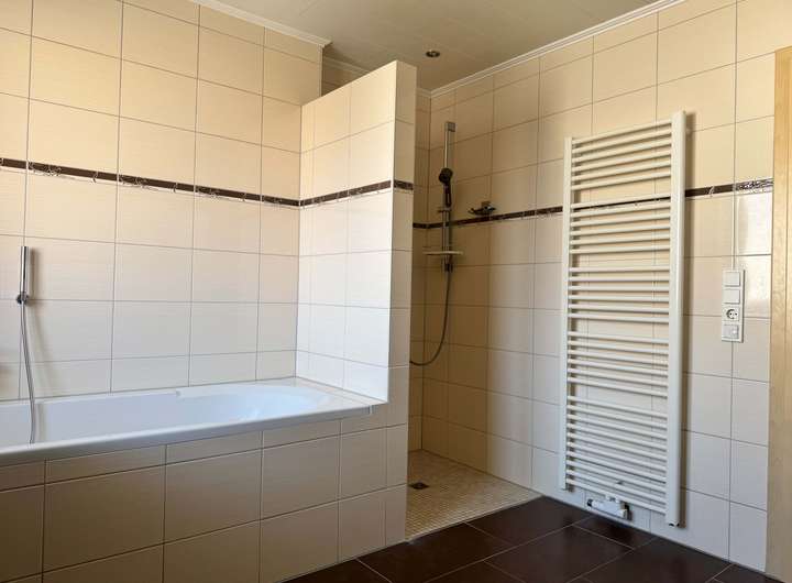 Im Obergeschoss befinden sich drei Schlafzimmer sowie ein Tageslichtbad mit Badewanne und ebenerdiger Dusche.