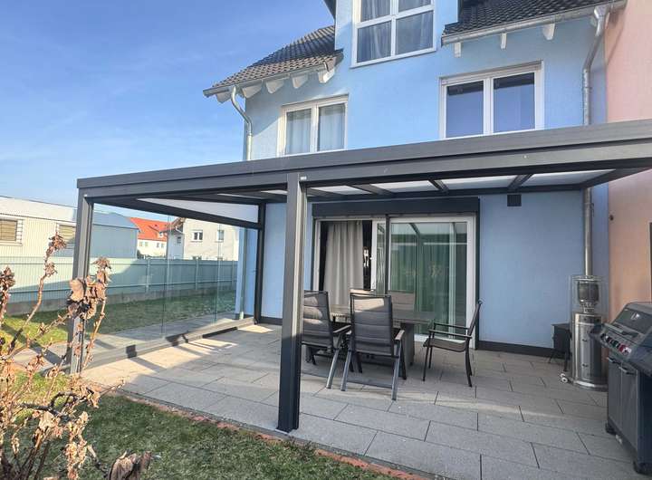 2025 wurden elektrische Senkrechtmarkisen an der Terrasse installiert und die 11 kW Wallbox ergänzt