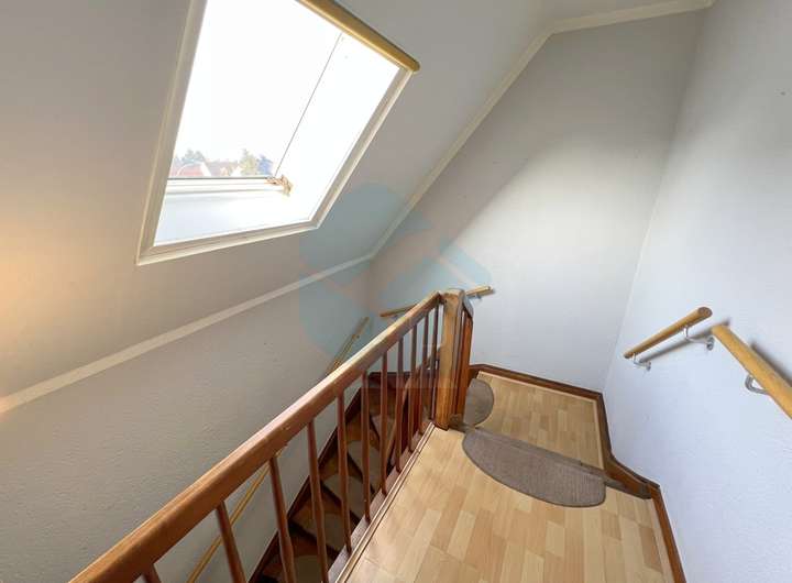 Das Dachgeschoss beherbergt zwei Schlafzimmer und bietet ausreichend Platz für Schlaf-, Kinder- oder Arbeitszimmer. Im Hof steht zudem ein Stellplatz für ein Fahrzeug zur Verfügung.