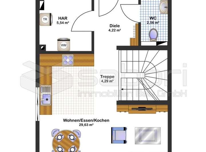 Im Erdgeschoss erwartet Sie ein großzügiger Wohn- und Essbereich mit offener Einbauküche, der das kommunikative Herzstück des Hauses bildet. Hier entstehen Begegnungen, gemeinsame Mahlzeiten und unvergessliche Momente. Die Fußbodenheizung sorgt dabei für ein angenehmes Wohnklima. Große Fensterfronten lassen viel Tageslicht herein und führen direkt in den Garten mit Terrasse – perfekt für entspannte Stunden in der Sonne, gesellige Grillabende oder ruhige Momente im Grünen. Ein praktischer Hauswirtschaftsraum sowie ein separates Gäste-WC runden das Erdgeschoss komfortabel ab.