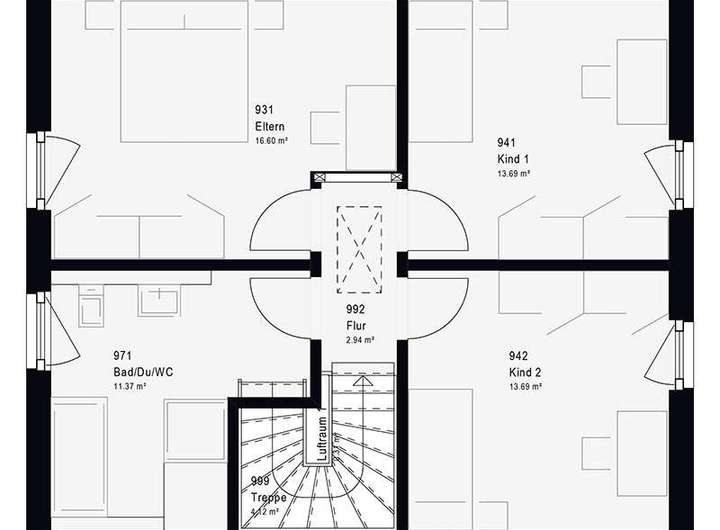 Unser Trend 12.0 S vereint effiziente Planung mit individueller Wohnqualität. 125,79 m² Nettogrundfläche