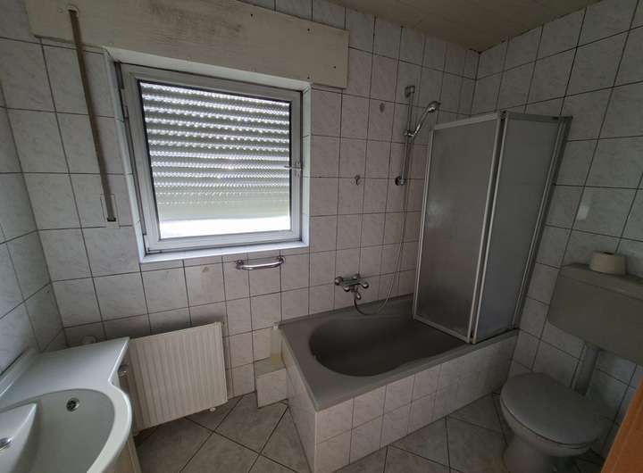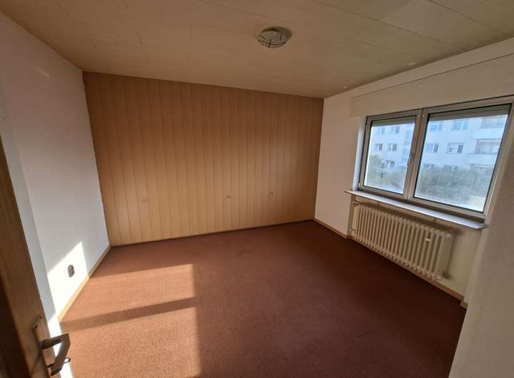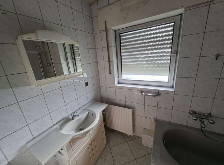 3 Schlafzimmer und das Tageslichtbad mit Badewanne. Alle Zimmer mit Teppichboden. Flur, Gäste-WC und Bad mit Fliesen.