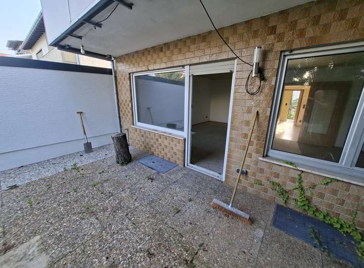 Die Terrasse mit dem Garten liegt Richtung Westen.