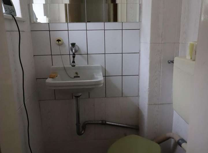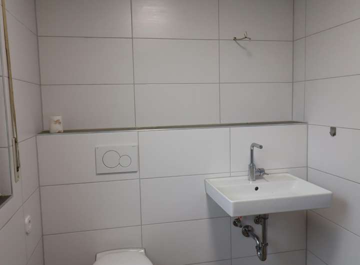 - Böden sind mit PVC, Fliesen und Teppichböden belegt