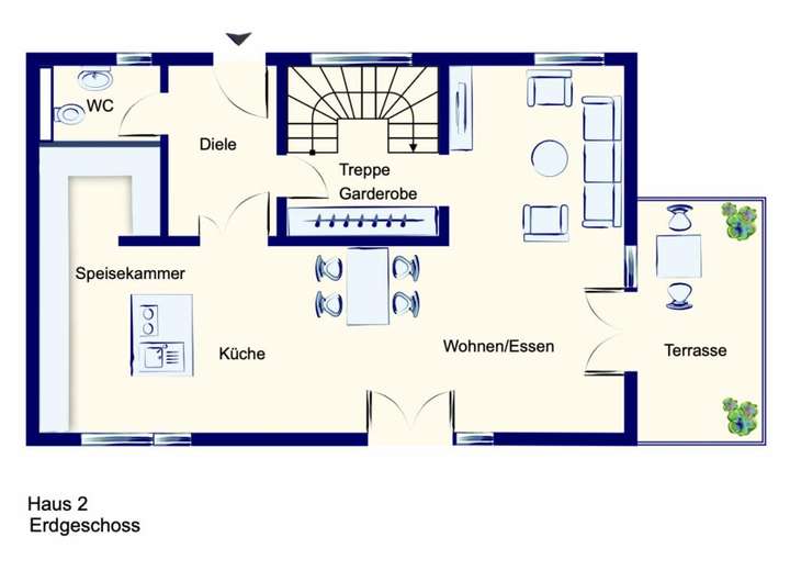 Die rund 7 m² große Diele und das räumlich abgetrennte Treppenhaus bieten ideale Voraussetzungen zum Ankommen und für eine großzügige Garderobe. Das Gäste-WC verfügt über Tageslicht und ist perfekt im Eingangsbereich platziert.