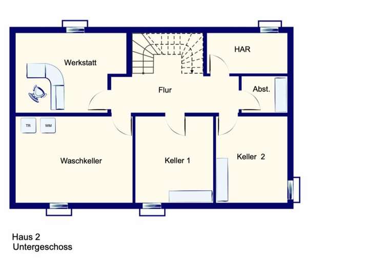 Ein Highlight anderer Art ist das Untergeschoss: Auf über 78 m² erwarten Sie hier der Hausanschlussraum, eine Waschküche, zwei separate Vorratsräume und ein großzügiger Hobbybereich. Eine Garage direkt am Haus sowie ein PKW-Stellplatz ergänzen den Wohnkomfort.