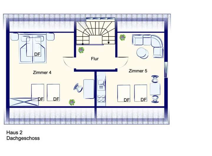 Das Dachgeschoss setzt dem Haus im wahrsten Sinne des Wortes die Krone auf: Mit einer Grundfläche von über 54 m² (das entspricht einer Wohnfläche von 40 m²) eröffnet sich Ihnen ein Raum voller Möglichkeiten. Ob ein bis zwei separate HomeOffice-Bereiche, ein großzügiges Refugium für (fast) erwachsene Teenager, die Einrichtung eines Ateliers oder als separater Gästebereich – dieser Raum passt sich Ihrem Leben an.