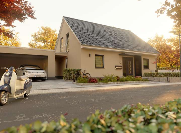 • Vorrüstung E-Auto: Wir denken nicht nur mit, sondern setzen auch direkt um. Alle unsere Häuser haben eine E-Auto Vorrüstung. Damit sind sie mobil, flexibel und bleiben beweglich.