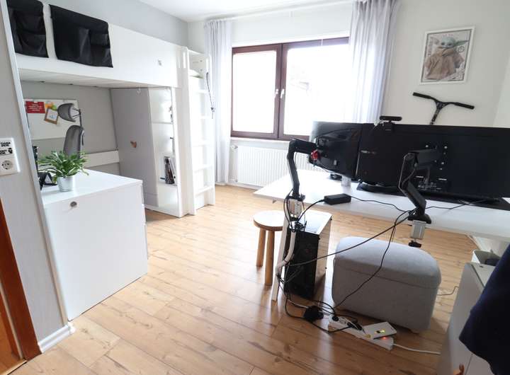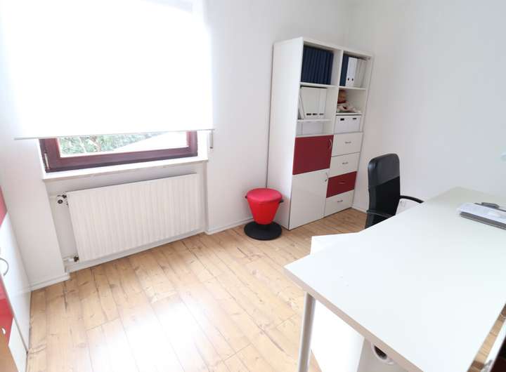 Zusätzlich gibt es ein separates Büro im OG, welches aktuell für ca. 420,- € vermietet ist und somit eine attraktive Einkommensquelle darstellt. Dieses Büro kann auch problemlos an die Wohnung 2 im OG angegliedert werden.
