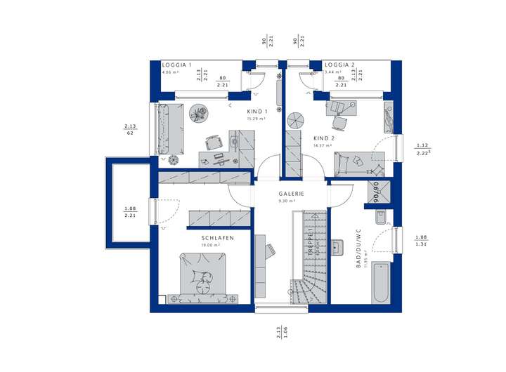 Obergeschoss runden das großzügige Hauskonzept des EVOLUTION 154 ab.