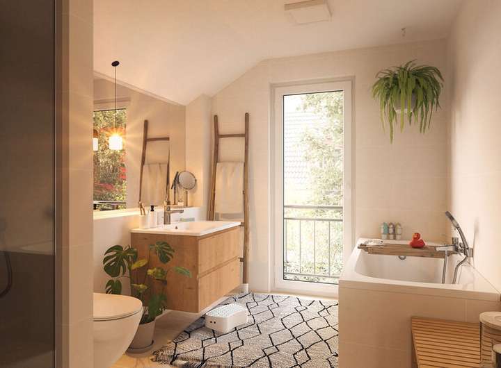 • Sanitärausstattung: Ihre Badezimmer sind voll ausgestattet. Dazu gehört auch eine bodengleiche Dusche.
