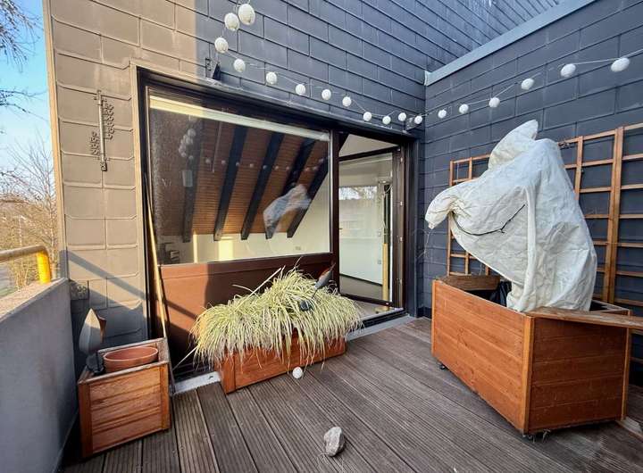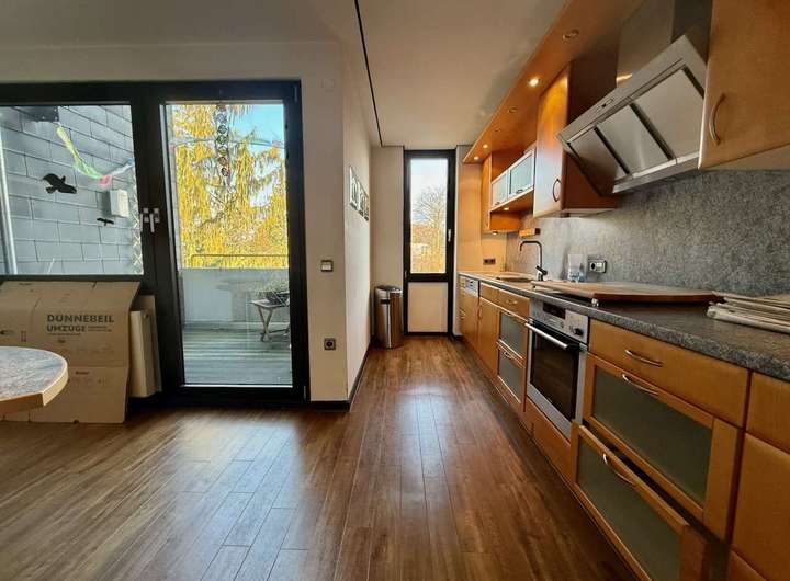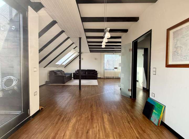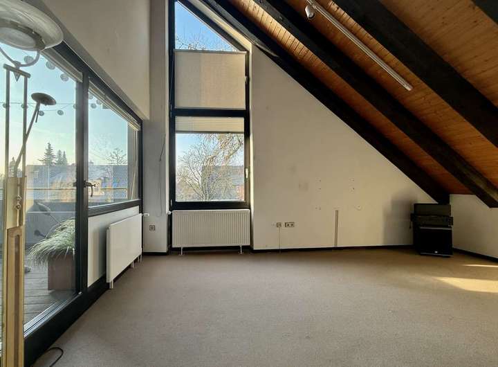 Im Erdgeschoss befindet sich eine gut etablierte, vermietete Praxis mit einer monatlichen Nettokaltmiete in Höhe von 1.878,50 Euro. Das Obergeschoss umfasst zwei Wohneinheiten, die flexibel auch zu einer großen Wohnung zusammengelegt werden können; beide Einheiten stehen derzeit leer und verfügen insgesamt über drei Loggien.