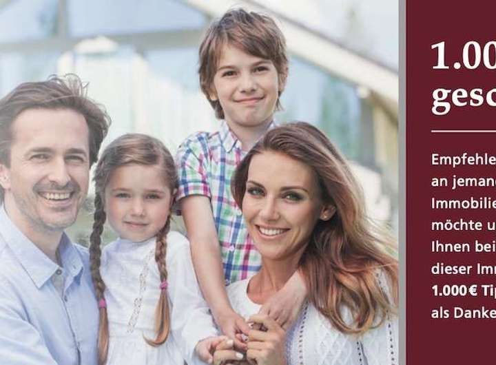 Wenn wir durch Ihren Tipp einen neuen Verkaufsauftrag bekommen, zahlen wir Ihnen bei Abschluss des notariellen Kaufvertrages bis zu 1.000 € als Dankeschön.