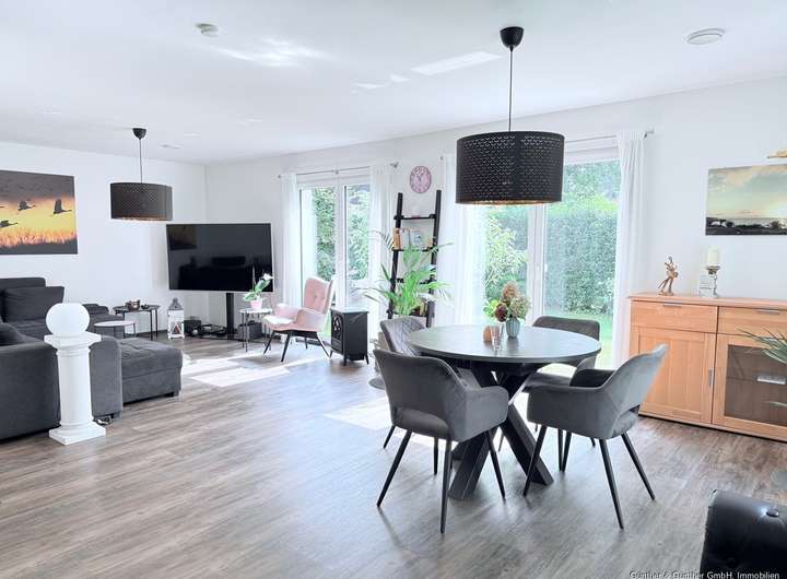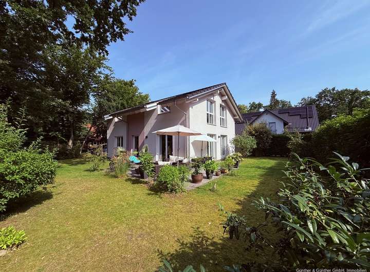 An einer verkehrsberuhigten Straße gelegen, zeichnet sich dieses attraktive Objekt durch eine durchdachte, offene und lichterfüllte Konzeption und eine hochwertige Ausstattung aus. Das freistehende Einfamilienhaus aus dem Jahr 2014 begeistert mit zeitloser Architektur und besitzt Neubaucharakter. Eine ideal ausgerichtete Sonnenterrasse bieten lauschige Sitzplätze mit Blick ins Grüne.