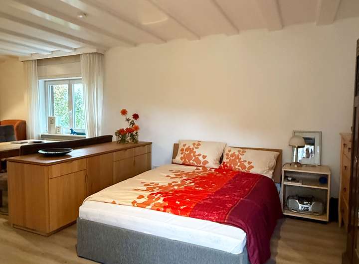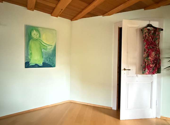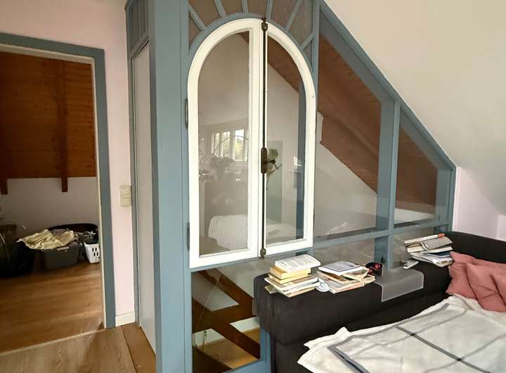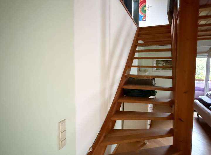 Im Obergeschoss befindet sich eine weitere Drei-Zimmer-Wohnung sowie ein weiteres Zimmer im Anbau, das aber zur Wohnung im Dachgeschoss gehört und über ein Treppe mit dem Dachgeschoss verbunden ist.