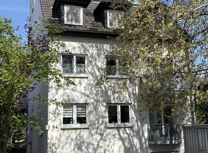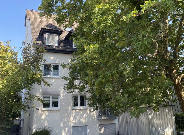 Dieses interessante 4-geschossige Wohn- und Geschäftshaus (das Dachgeschoss ist kein Vollgeschoss) wurde 1992 in Massivbauweise auf dem 398 qm großen Grundstück erbaut und ist in den vergangenen Jahren seit 2010 fortlaufend vom Eigentümer saniert und mit Sorgfalt instand gehalten worden. Im Haus befinden sich 5 Wohneinheiten mit einer Wohnfläche von 343 qm und 1 Gewerbeeinheit mit einer Fläche von 46 qm. Vor dem Haus ist eine kleine gepflasterte Hoffläche, auf der rechts die 4 KfZ-Stellplätze und ein Container für die Fahrräder angeordnet sowie an der linken Seite zur Fußgängerbrücke hin die Mülltonnen platziert sind. Hinter dem Haus befindet sich eine kleine Rasenfläche, die mit einer Mauer zum Bürgersteig hin abgegrenzt ist.