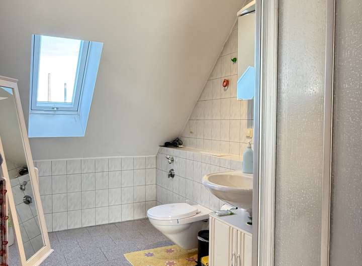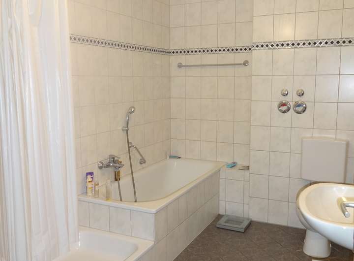 Die 5 Wohnungen haben eine solide Ausstattung und verfügen z.B. über Laminatböden in Buche- oder Eiche-Optik in den Wohn- und Schlafzimmern und helle, leicht gesprenkelte Fliesenböden in den großen Küchen und den wunderbar geräumigen Bädern, raumhoch geflieste Wannen- oder Duschbäder in hellen weiß-zartgrauen Farbtönen mit weißen Sanitärobjekten, helle großzügige Wohnzimmer, behagliche Schlafzimmer, gemütliche Kinderzimmer, schön geschnittene Küchen, moderne Bäder, von denen zwei Tageslicht haben, weiße 2-fach isolierverglaste Kunststoff-Fenster mit Rolläden, sowie praktische Abstellräume (als Kellerersatz), eine Teil-Innendämmung und schöne Sonnenbalkone in den 3-Zimmer-Wohnungen. Die Gewerbeeinheit, die sich im Erdgeschoss befindet, ist mit hellem Fliesenboden und Fussbodenheizung, einem offenen Küchenbereich und WC ausgestattet und bietet den Blick auf die kleine Rasenfläche hinter dem Haus.
