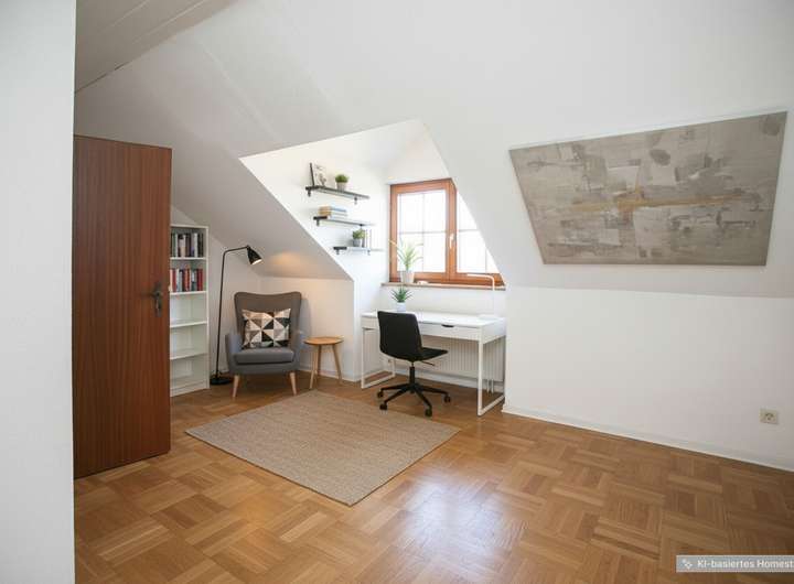 Das Obergeschoss beherbergt zwei Schlaf-/Zimmer und ein Tageslichtbad mit Badewanne und Dusche. Zwei weitere Schlaf-/Zimmer befinden sich im ausgebauten Dachgeschoss. Zwei Gauben mit großen Fenstern im Dachgeschoss vergrößern nicht nur den Wohnraum, sondern sorgen auch für viel Tageslicht.