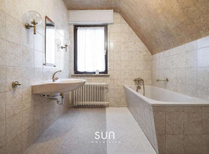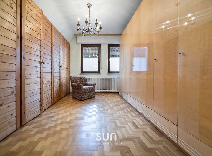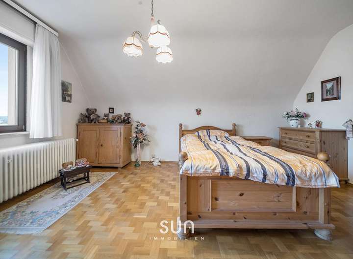 Die Wohnfläche von ca. 150 m² verteilt sich auf zwei Etagen und umfasst insgesamt 7 Zimmer, darunter vier Schlafzimmer sowie drei Tageslichtbäder. Ergänzt wird das Raumangebot durch einen vollständig unterkellerten Bereich sowie einen ausbaufähigen Spitzboden, der zusätzliche Nutz- oder Wohnfläche ermöglichen kann.