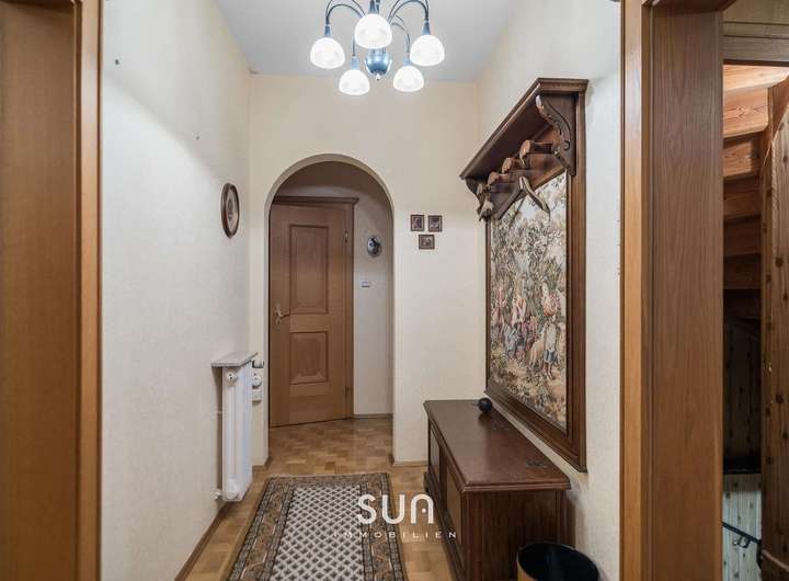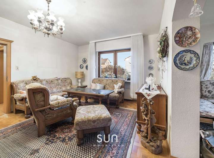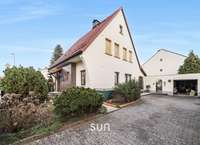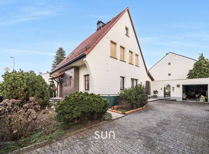 Zum Haus gehören eine Garage mit ca. 21 m² sowie mehrere Außenstellplätze direkt auf dem Grundstück. Die Immobilie wurde in massiver Bauweise errichtet und über die Jahre laufend instand gehalten.