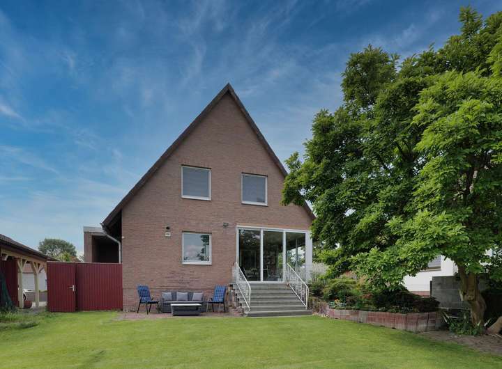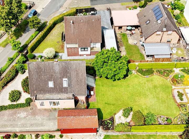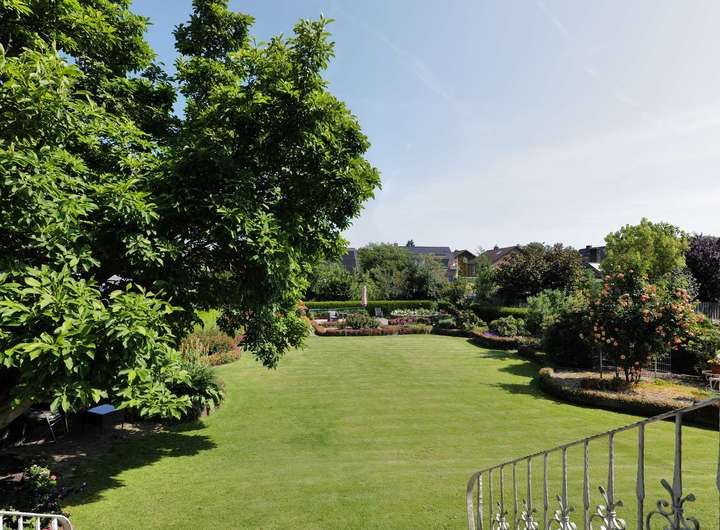 Im hinteren Teil des Grundstücks ist eine Bebauung denkbar. Der Wert dieser Immobilie liegt nicht nur im Haus, sondern im Zusammenspiel von Wohnraum und Außenraum.