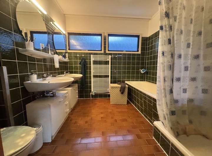 Der Grundriss besticht durch eine helle, freundliche Atmosphäre auf einer Etage, mit einem großzügigen Wohn-Esszimmer als zentralem Punkt des täglichen Lebens. Die separate Küche verbleit im Haus und lädt zu gemütlichen Kochabenden ein. Drei freundliche Schlafzimmer bieten Platz für Eltern- und Kinderzimmer bzw. Arbeitszimmer. Das großzügige Bad verfügt über eine Badewanne und Dusche. „Bei den Außenfassadenplatten handelt es sich um zeittypische Bauteile. Aufgrund des Baujahres kann nicht ausgeschlossen werden, dass diese asbesthaltige Bestandteile enthalten.“