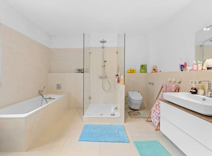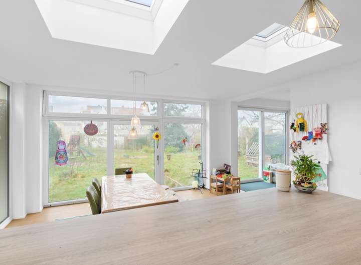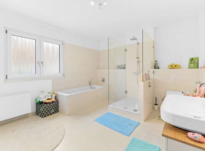 Insgesamt fünf weitere Zimmer bieten zahlreiche Optionen (Kinderzimmer, Arbeitszimmer oder Gästezimmer) die Ihnen viel Raum für Ihre individuellen Wünsche geben. Zwei Tageslichtbäder im modernen Stil bestätigen die insgesamt hochwertige Ausstattung. Zudem besteht die Option eines zusätzlichen Dachbodenausbaus.
