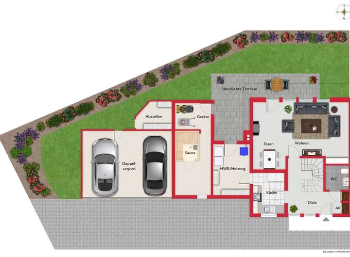 Zum Objekt gehören ein Doppelcarport mit angrenzendem Abstellraum. Der nach Südwesten ausgerichtete Garten überzeugt durch optimale Sonnenverhältnisse und bietet einen idealen Rückzugsort zum Entspannen und Verweilen im Freien.