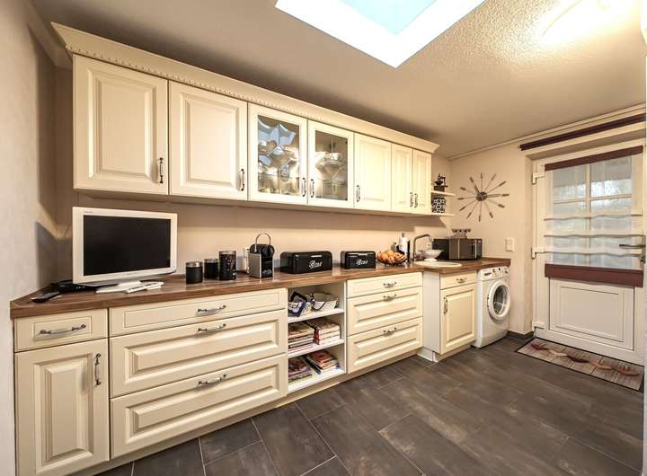 Küche: Eine gepflegte Landhaus- Einbauküche mit sämtlichen E-Geräten wird mit verkauft
