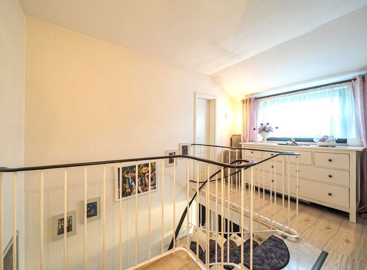 Diese gepflegte Doppelhaushälfte wurde im Jahr 1979 errichtet und erstreckt sich über Erdgeschoss, Dachgeschoss sowie Dachboden.