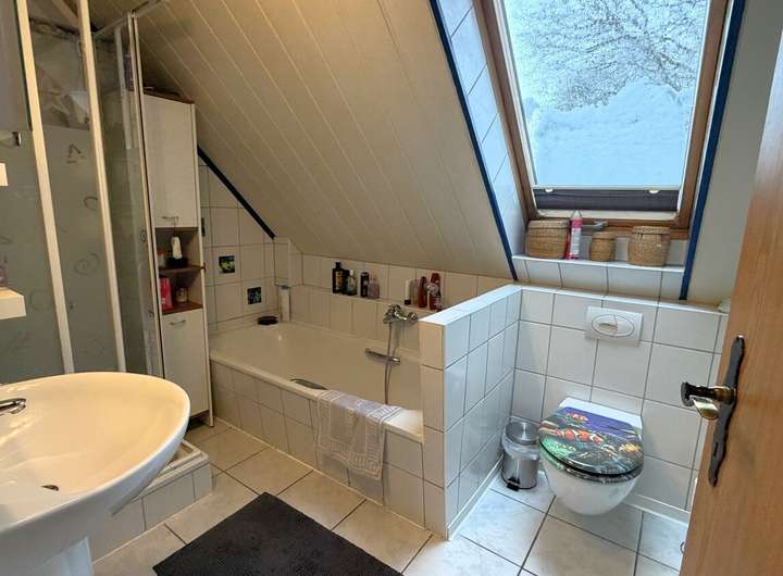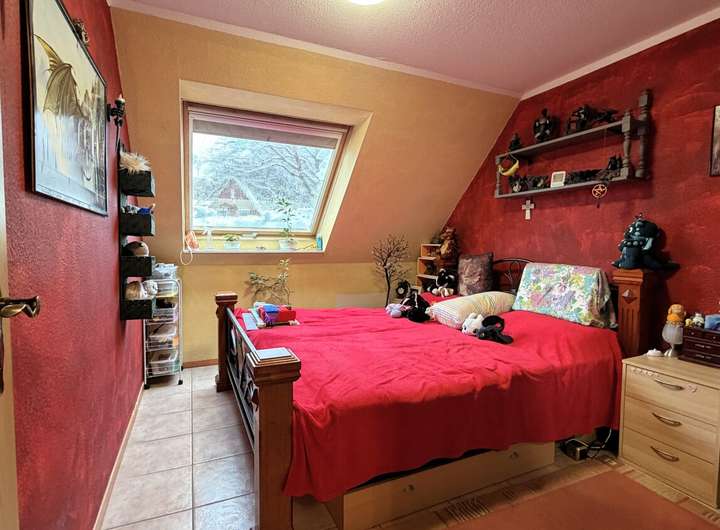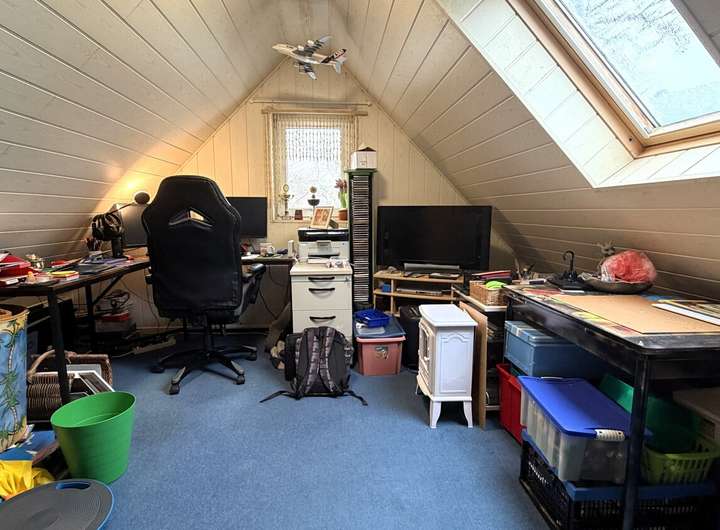 Für weiteren Platz sorgt der vollunterkellerte Bereich, welcher teilweise wohnlich ausgebaut ist und somit verschiedene Nutzungsmöglichkeiten eröffnet. Hier ist derzeit ein weiteres Schlafzimmer. Das wohnliche, ausgebaute Dachgeschoss bietet zusätzlichen Raum, ideal für ein Arbeitszimmer, Gästezimmer oder individuelle Rückzugsbereiche. Praktischen Stauraum finden Sie darüber hinaus im vorhandenen Schuppen.