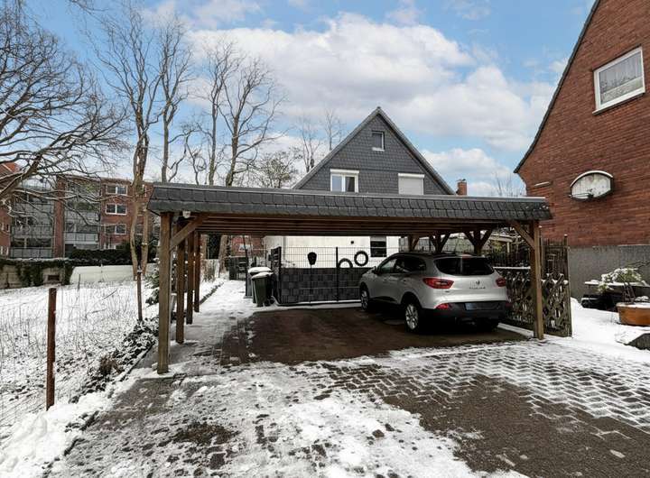 Ein weiterer Vorzug dieses Angebots ist der vorhandene Carport, der Ihr Fahrzeug zuverlässig vor Witterungseinflüssen schützt.