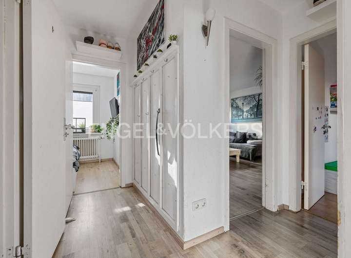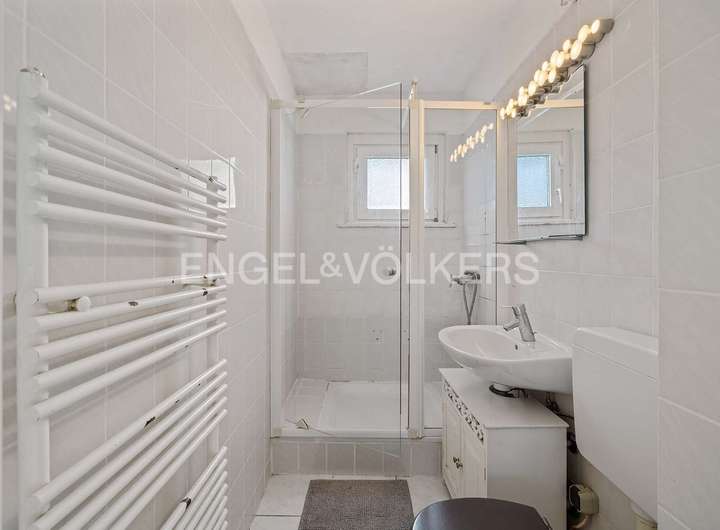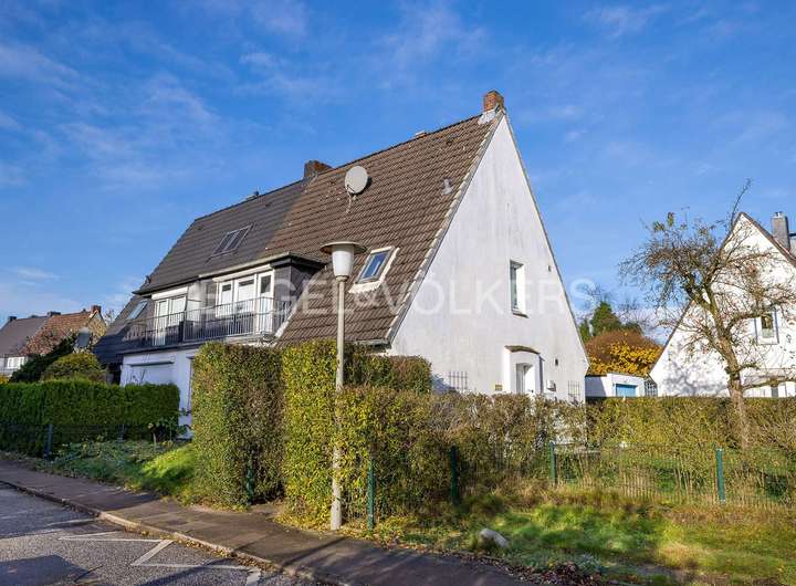 Diese Doppelhaushälfte aus dem Jahr 1951 bietet eine solide Basis, um modernes Wohnen nach den eigenen Vorstellungen zu gestalten. Die Wohnfläche bietet Raum für zwei Wohneinheiten, lässt sich jedoch auch problemlos als eine Einheit bewohnen. Das Erdgeschoss mit ca. 50 m² besteht aus einem Schlafzimmer, einem Wohnzimmer, einem dritten Zimmer sowie einer Küche mit Gartenzugang und einem Duschbad. Die Wohnräume sind mit Parkettboden ausgestattet und die schallgeschützten Fenster verfügen über elektrische Außenrollläden.