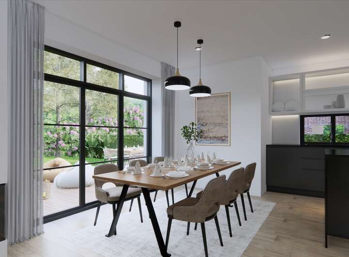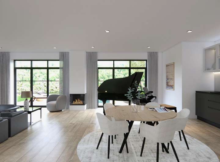 Ca. 330 m² Wohnfläche auf drei Ebenen, voll unterkellert, mit 9–10 flexibel nutzbaren Zimmern. Großzügiger Wohn- und Essbereich mit Gas- oder Holz-Kamin, moderne Be- und Entlüftungsanlage, bodentiefe 3-fach verglaste Fenster mit elektrischen Jalousien sowie Fußbodenheizung über moderne Wärmepumpe.