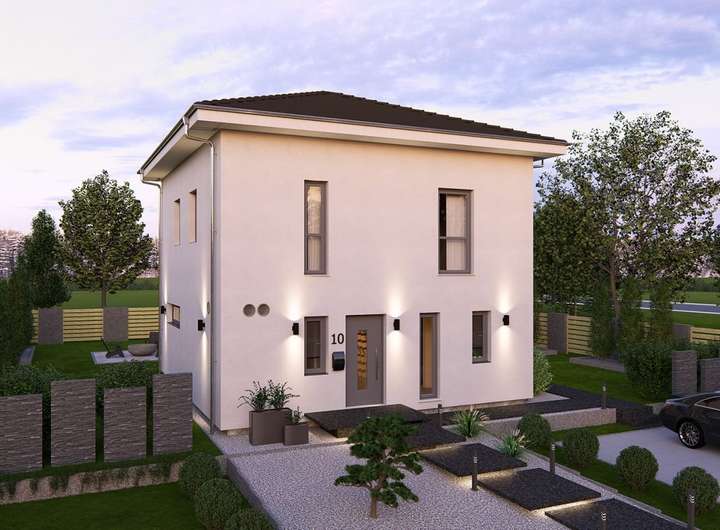 In der Kalkulation ist die Stadtvilla in der Ausbaustufe "Malervorbereitet*", sowie ein Grundstück** inkludiert.