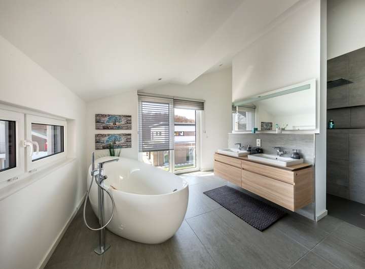 Die Stadtvilla 10.2 mit 135 m² verbindet modernes Wohnen mit einem Gefühl von Zuhause. Im Erdgeschoss öffnet sich der großzügige Wohnbereich - hell, offen und lebendig. Die Treppe steht dabei im Mittelpunkt: Raumtrenner und Gestaltungselement zugleich, das dem Zuhause Charakter verleiht. Hier wird gekocht, gelacht und gelebt. Praktisch ergänzt durch ein Gäste-WC und den Hauswirtschaftsraum, der den Alltag leichter macht. Im Obergeschoss warten Rückzugsorte für die ganze Familie - ein Elternzimmer mit Ankleide, zwei Kinderzimmer voller Ideen und ein Familienbad, das morgens wie abends zum Wohlfühlort wird.