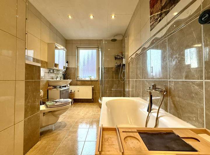 Die Konzeption der Räume entspricht einem guten Wohnstandard und einer zeitgemäßen Aufteilung. Das Gebäude ist aktuell in 2 Wohneinheiten mit separaten Zugängen aufgeteilt. Die Wohnung im Erdgeschoss umfasst eine Wohnfläche von ca. 80 m², aufgeteilt auf 2 geräumige Zimmer sowie Bad und Küche. Der Zugang erfolgt straßenseitig.