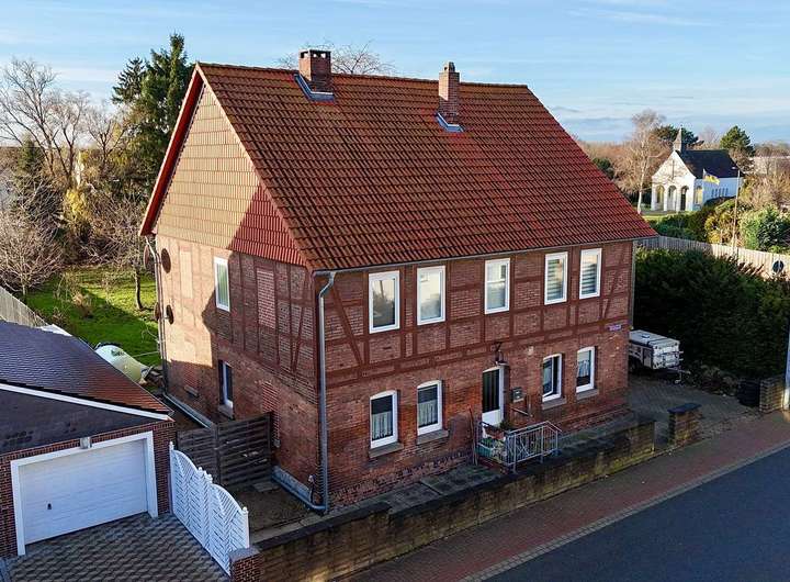 Das Erdgeschoss besteht aus Ziegelmauerwerk, das Obergeschoss wurde als Fachwerk mit Ausfachungen in Ziegelsteinen ausgeführt. Das Haus präsentiert sich aufgrund laufender Instandhaltungen und den Modernisierungsmaßnahmen (Fenster 2-fach isolierverglast, Elektrik, Dach, Heizung, Bäder, Balkon, neue Einbauküche im OG aus 2024) in einem gut unterhaltenen Zustand.