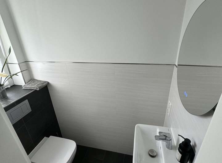 Eine hochwertige Nolte-Einbauküche mit NEFF-Geräten und BORA-Kochfeld ergänzt die moderne Ausstattung des Hauses. Die großen, lichtdurchfluteten Räume bieten vielfältige Möglichkeiten zur individuellen Möblierung und Gestaltung.