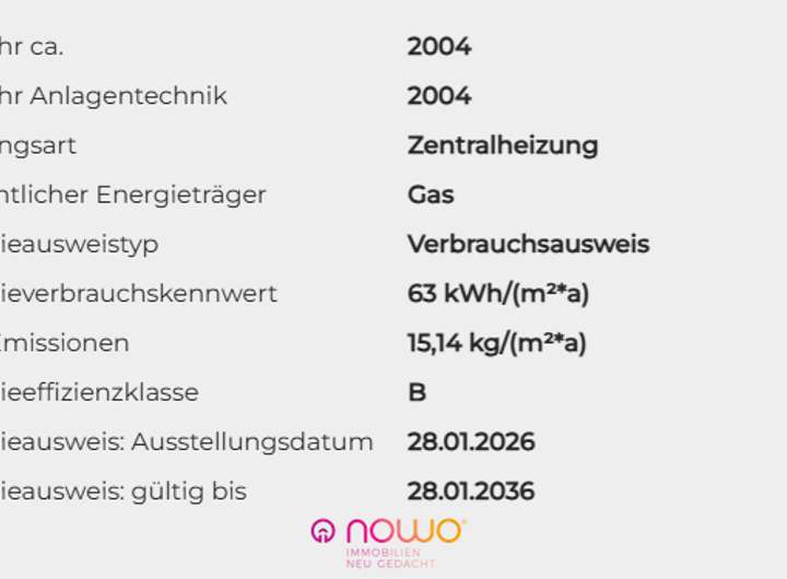| Energieverbrauchskennwert | 63,0 kWh/(m²*a) |
