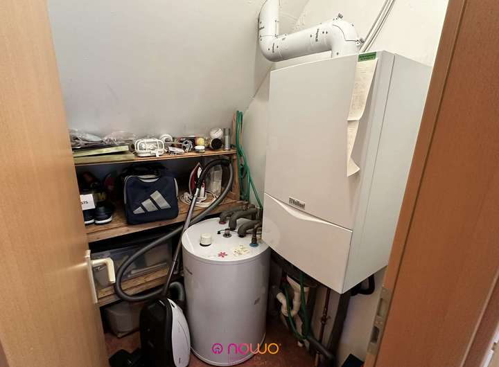 - Gaszentralheizung aus dem Baujahr, angeordnet im Abstellraum des Obergeschosses