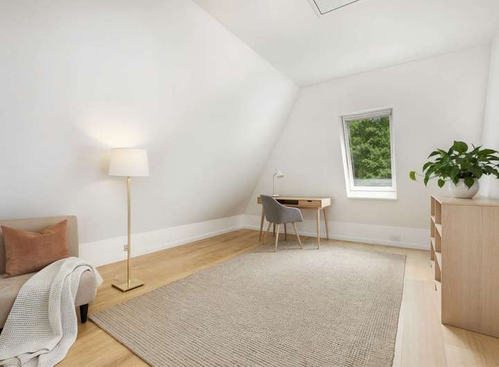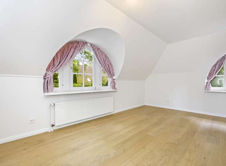 Das vollständig ausgebaute Dachgeschoss (wohnliche Nutzfläche von ca. 42 m²) bietet zwei weitere gemütliche Räume, die sich hervorragend als Gäste-, Arbeits- oder Rückzugszimmer eignen und dank großer Dachflächenfenster viel Licht erhalten.