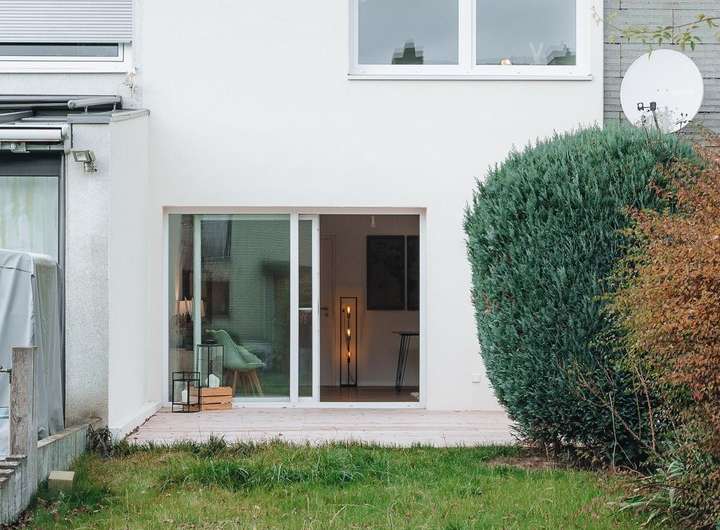 Auch der Außenbereich präsentiert sich in neuem Zustand: Der Vorgarten ist neu gepflastert, die Eingangstreppe und die Haustür wurden erneuert, die Außenwände gedämmt und verputzt, und das Dach wurde instandgesetzt. Die bestehende Bepflanzung sorgt für eine angenehme Atmosphäre und macht den Garten zu einem idealen Rückzugsort mit vielfältigen Gestaltungsmöglichkeiten.